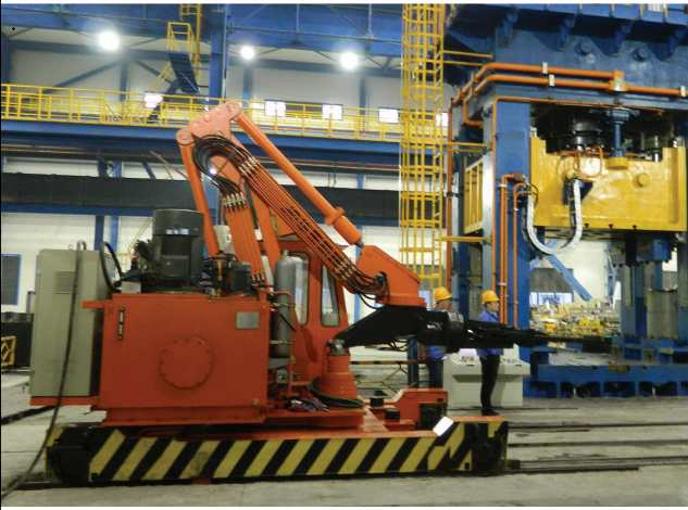 公司引進(jìn)德國先進(jìn)技術(shù)自主研發(fā)的系列機(jī)械器人主要用于鍛壓、鑄 造、熱處理等行業(yè),實(shí)現(xiàn)在高溫、重載環(huán)境中工件的自動輸送和精確定 位。以降低工人勞動強(qiáng)度或?qū)崿F(xiàn)全線無人化生產(chǎn)。