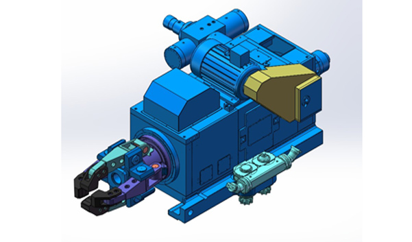 操作機沒有升降動作,夾持中心與數(shù)控快鍛機中心始終保持同心,結(jié)構(gòu)形式為箱體式結(jié)構(gòu),用來夾持,導(dǎo)向,前進(jìn)和旋轉(zhuǎn)工件,具有①夾鉗夾緊、②車體行走、③夾鉗旋轉(zhuǎn)、④夾鉗伸縮等4個動作。