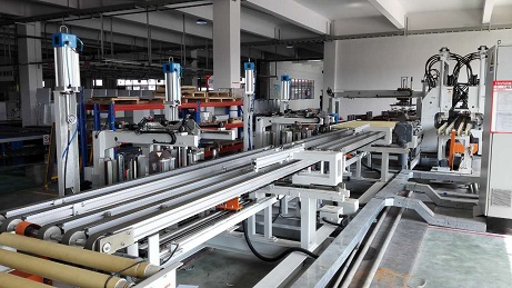 該成型線用以完成冷柜門殼的切角、沖孔、拉伸、折彎成型,設(shè)備運行穩(wěn)定,操作簡 單,可實現(xiàn)一鍵換型。